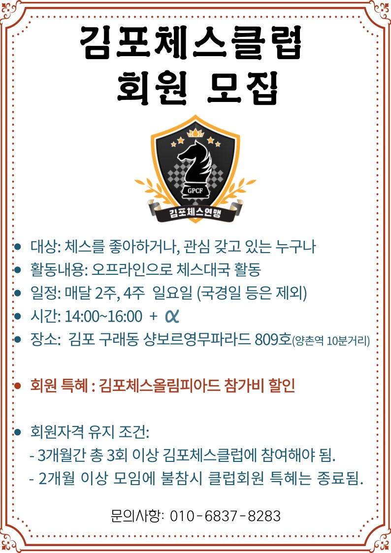 | 체스 대회, 모임, 기타 등등 정보가 모이는 곳-24년1월16일 수정 (3) | 2024.01.16 |